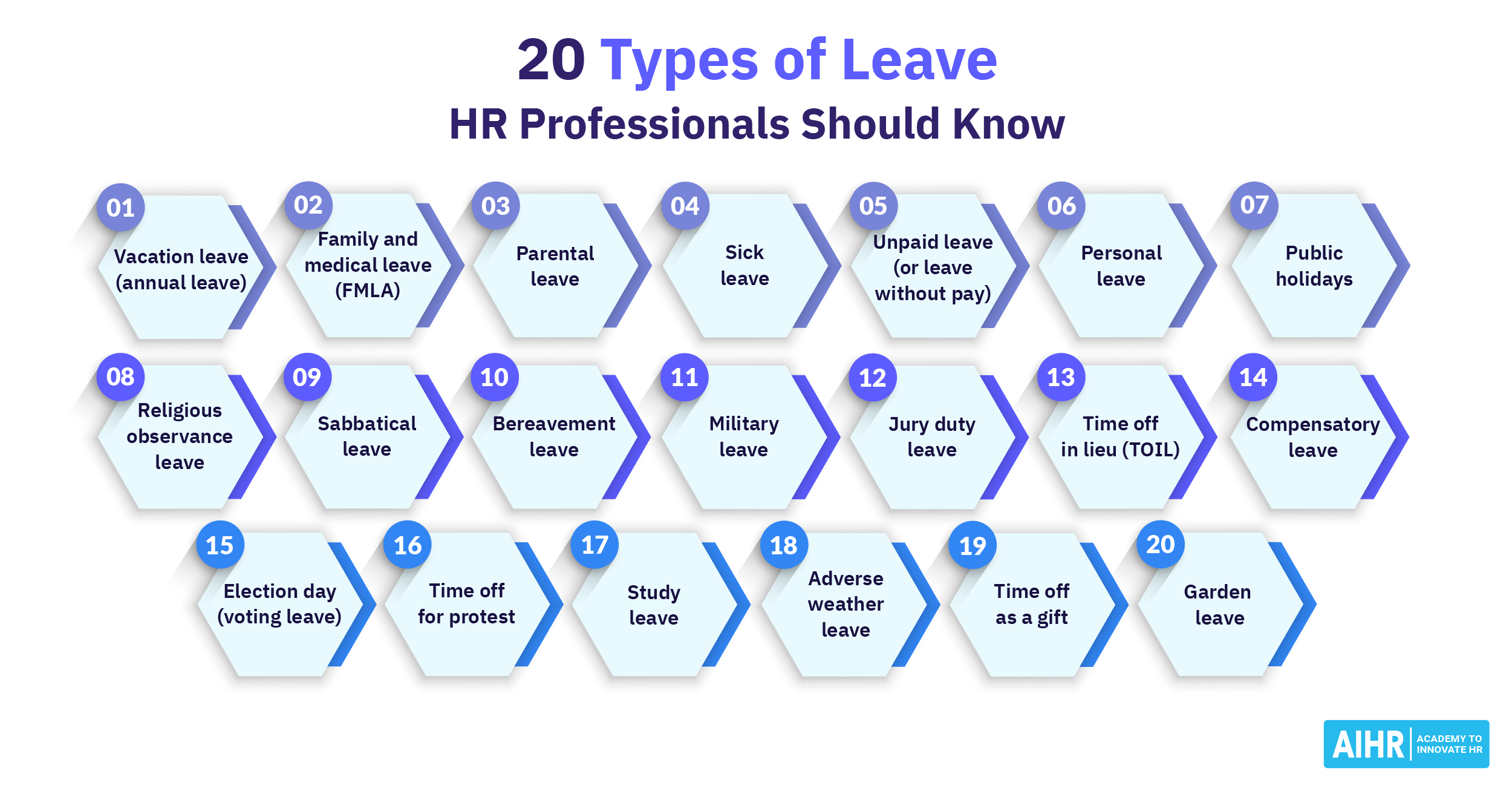 - Holiday comp time: When employees work on scheduled holidays or official non-working days, they may earn compensatory leave in addition to or instead of extra pay. This type of leave allows employees to take time off at a later date in exchange for working on a day when they would normally be off.